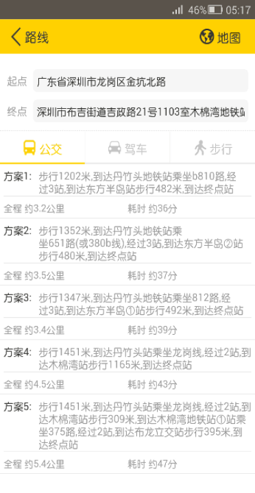 百米工作为你找出所有到达工作场所所有的路线、时间并提供导航。