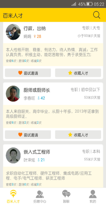 百米工作按距离远近、雇主信用值及搜索的条件来综合排序,为你列出最适合的职位。