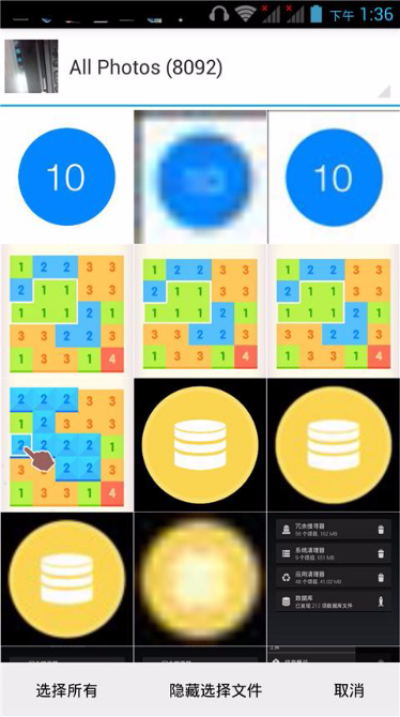 这里的功能非常强大,我们可以把不想让人看到的东西隐藏起来了,几乎任何文件、程序都可设置保护,这里以图片为例,点击图片图标,进入增加保护界面,点击+号,会打开系统图库,把想要保护的图片选入就可以了. 我们甚至设置隐藏程序本身的图标,通过拨打##123456来打开。另外还支持设置个伪密码,就算别人要求你输入密码查看你隐藏的东东,你就输入这个伪密码打开后会什么都看不到。