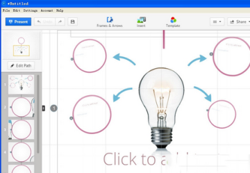 prezi是采用故事板(storyboard)格式让演示者可以缩放图片,通过快捷的动画来演示关键点。Zooming User Interface(缩放式用户界面,简称Zooming UI)的特点是界面可缩放,zoom out就能纵观全局,zoom in则可以明察细节。实现了由整体到局部的 Mindmap 的开放性思维方式。一经推出,受到很多人的青睐,更被称为PPT杀手。但是其一大缺点是不支持简体中文,这点让我们很不爽。