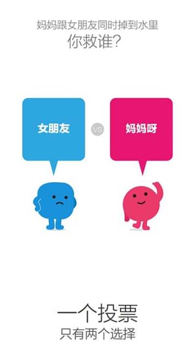 我们生活中经常会遇到不少两难选择,例如女朋友跟妈妈掉水里先救谁?豆腐脑吃甜的还是吃咸的?我们一直都很好奇这类问题不同人选择的最终结果。 爆炸投就是用来寻找类似这样问题的答案的真实社区。本着逼死强迫症的原则,每个问题只有两个答案可供选择,也许只有两个答案的问题才能更逼近你内心的真实想法。通过你对每个问题的看法,爆炸投可以帮你发现自己所属的派别,是跟随大众的多数派,还是特立独行的少数派,亦或是摇摆不定的中间派。