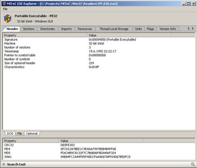 MiTeC EXE Explorer是一个功能强大的基于 MiTeC Portable Executable Reader 的exe资源查看器,它可以读取并显示可执行文件属性和结构,它兼容PE32(PE),PE32+(64bit),NE(Windows 3。x新的可执行文件)和VxD(虚拟设备驱动程序的Windows 9x)文件类型。而且还支持 .NET 的可执行文件。
