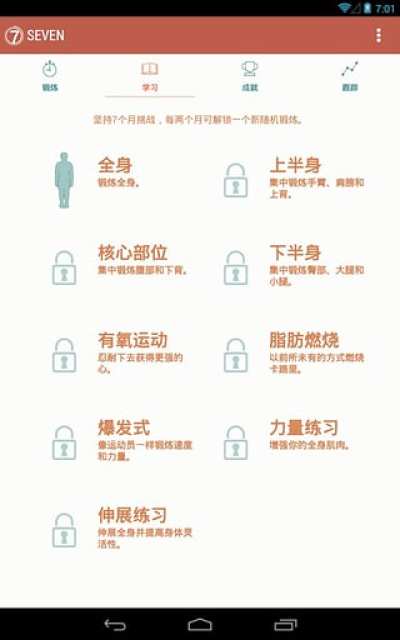 Seven的7分钟锻炼提供了清晰的图解、可视计时器、语音指示,甚至有触觉反馈以在30秒强度锻炼和10秒休息之间切换。