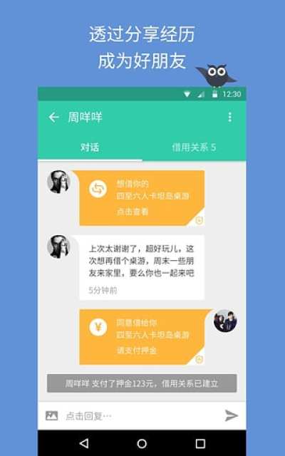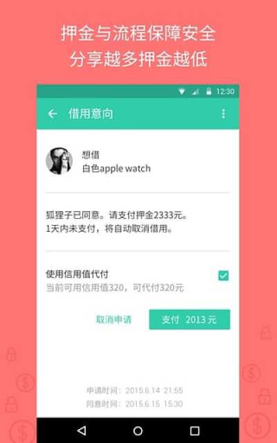 押金机制和借用流程保障你的安全,信用值让你更容易发现靠谱的人;