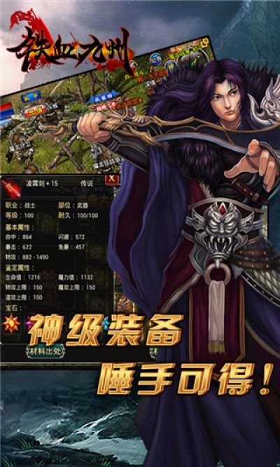 铁血九州是一款MMORPG角色扮演类型的热血PK手游;该作游戏将为大家带来极致的PK体验;苹果商店、九游、当乐排名前五大作;致敬经典,超越经典; 一款超越经典的传奇之作,它属于任何人都曾幻想过的年代,这里有热血、青春、激情无限的战斗、无休止的称霸。