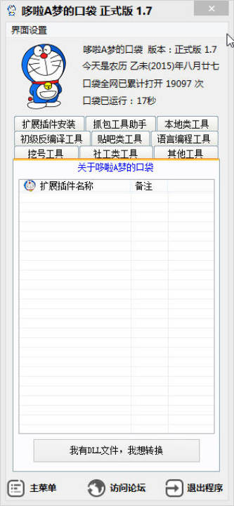 哆啦a梦的口袋(编程网络工具集)是一款多功能编程辅助工具,这款软件具有反编译工具、贴吧类工具,语言编程工具、抓包工具等功能,他可以满足很多用户的需求,推荐有需要的用户下载使用。