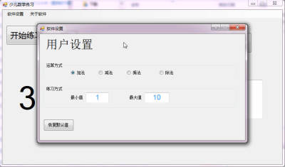 少儿数学算术练习软件是一款简单的数学学习练习工具,适用于学龄前少儿;默认是计算1到10以内的算术,包括加、减、乘、除的基本运算;用户可根据宝宝年龄和学习进度自定义设置算术范围及运算方法。