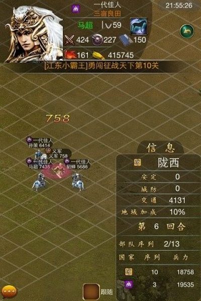 兵马未动粮草先行,游戏为全自动不可操控的,所以再出征时先带够充足粮草,否则粮草缺失,战斗失败。在国都的军机处或者其他有武将和历史上的英雄的地方,玩家可以去挑战。至于招募英雄,普通英雄是没有技能的,而历史名将则有非常厉害的属性。