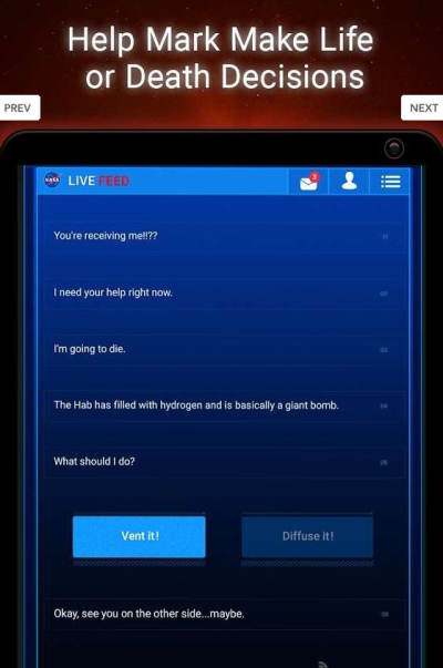 - 在这个互动式游戏里帮助他在发现自己孤立并被困于火星之后进行自救。