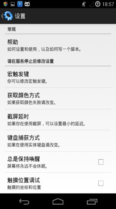 使用屏幕自动点击助手,能够让Android手机自动循环有序的点击屏幕上的点,同时也能做手势。当然在使用前,首先需要录入宏,它会自动保存。之后就可以多次使用了。还可以调节宏执行的速度、重复次数和间隔时间等参数。