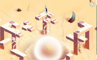 幽灵记忆是一款画风简单空灵的三维立体视觉游戏,不仅风格类似于纪念碑谷,玩法上也有类似之处,纪念碑谷通过改变建筑物上的部分而形成通路,而本作也借助角色手中的魔杖来改变外部环境。本作最大的亮点在于每个关卡关联两个两个世界。