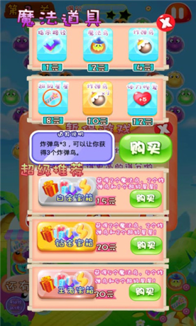 众多障碍泡泡,展现各式打泡泡技巧,让您流连忘返,精致画面,开启全新的泡泡大战之旅,就让我们一起体验泡泡鸟带给我们的欢乐与激情吧!