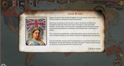 其实这就是一个把故事背景设定在了1800-1900年的维多利亚时期征服游戏,想要成为世界列强,就必须完美规划好自己国内的事物,同时对外进行各种扩张,非常考验智商的游戏哦。