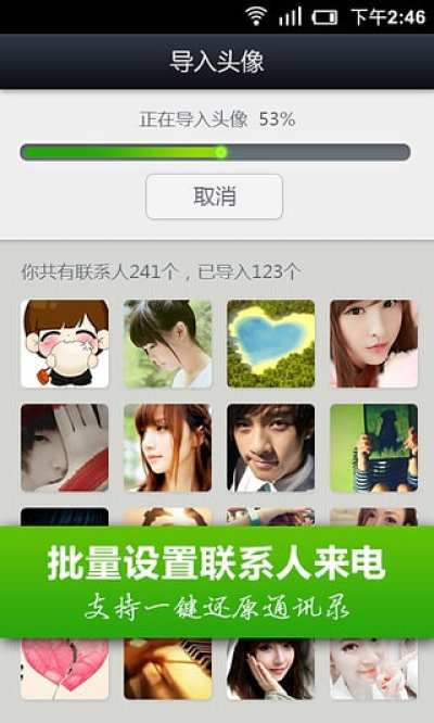 1、一键导入联系人QQ、微博、人人头像到电话本,让来电更有爱。