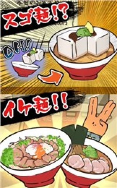你需要控制一碗面不断上升,躲开一路上被面吸引而来的食材——鱼、鸡腿、白菜……一旦撞上食材,你就会被做成对应食材的面!