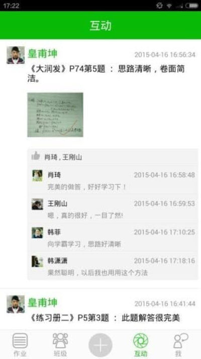 互动:老师可以设置优秀作业,让学生们在互动当中学习和讨论优秀作业。