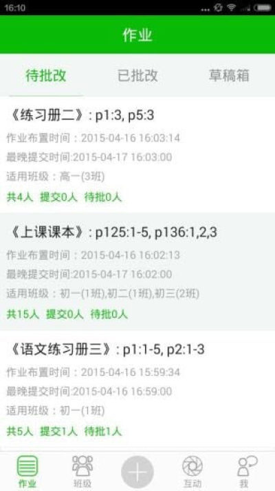 班级:老师可以创建班级,让自己的学生加入。老师可以根据班级分班级布置作业。查看每个学生历次作业的提交情况和书写情况。