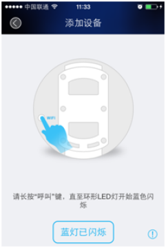 b)设备通电,查看设备WiFi指示灯是否蓝色闪烁,如果没有,请长按WiFi键,等待至WiFi指示灯为蓝色闪烁后点击“蓝灯已闪烁”;