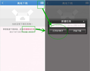 1.打开UC网盘,进入“离线下载”,新建离线任务!选择“打开BT种子”.