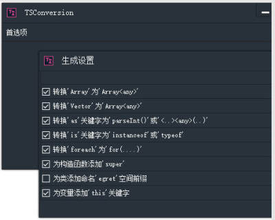 方便的代码转换工具,可以将您的ActionScript 3代码批量转换为可以被Egret使用的TypeScript代码。工具针对几十项语法特性进行分析转换,而且有大量参数供您自定义,转换后的代码只需修改少量代码即可运行。