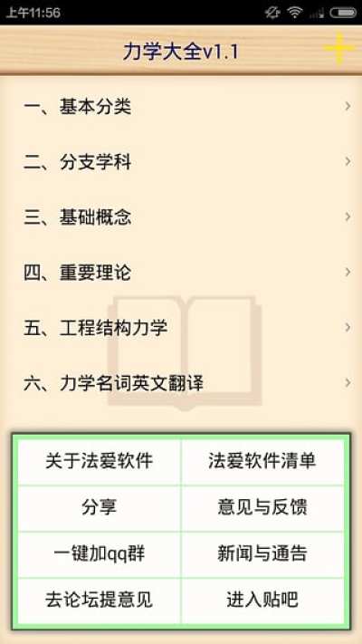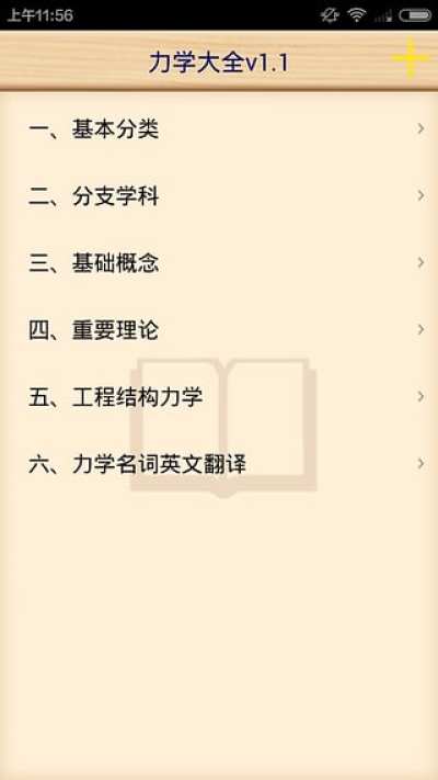 力学大全软件:对力学知识进行全面分类解析,分类近百种力学科目,包含近千个力学术语解释、力学定理定律、常用公式。