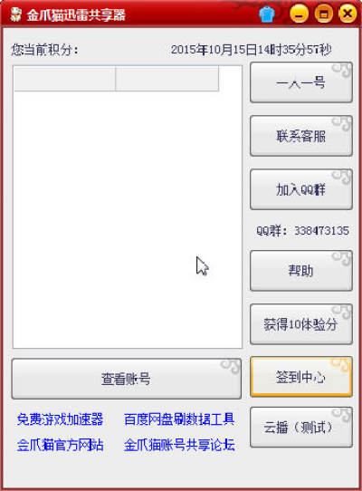 金爪猫迅雷共享器是一款非常简单实用的的迅雷账号共享工具。该款迅雷账号共享器界面小巧、操作简单,只需轻轻一点,就能快速有效的获取最新迅雷账号,方便实用,省去注册时间,更加快捷。