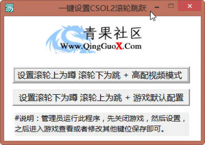 一键设置CSOL2滚轮跳跃,可以帮助玩家将反恐精英OL2游戏中的滚轮向上或向下设置跳或蹲命令,适合高配视频模式。