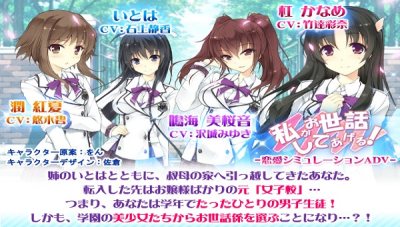 《让我来照顾你!》使用了 E-mote 把静态立绘变成动画,更真实地感受到故事人物的形象。本作邀请了有名的声音竹达彩奈、泽城美雪、悠木碧、石上静香为游戏中的女主角们献声。