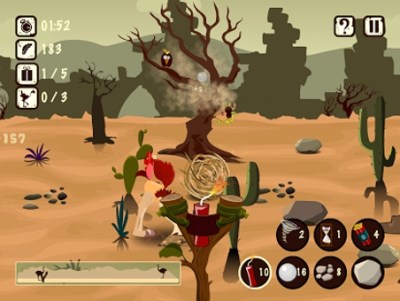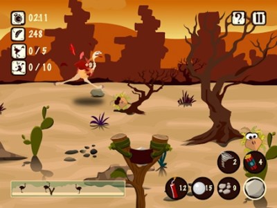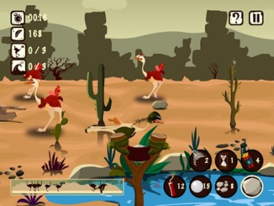 《沙漠猎手 Desert Hunter》是一款挺有趣的弹弓射击模拟器。游戏中玩家的主要任务是追捕鸵鸟。游戏操作也很是简单,有点类似怒鸟和打鸭子的结合体。除了弹射石头外,游戏还配有其他有趣的武器,把玩起来挺有意思的。