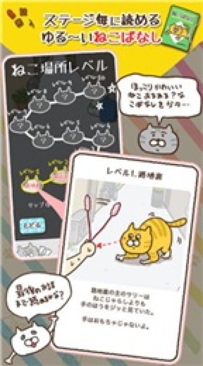 在某个地方有一条人与猫咪幸福生活在一起的街道。利用摇晃狗尾巴草、来和所有的猫咪相遇!用『猫咪轮盘』收集猫咪!找好时机摇晃、来收集猫咪!