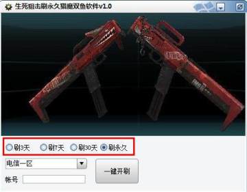 这款生死狙击刷枪软件支持刷3天,刷7天,刷30天和刷永久,支持游戏选区。