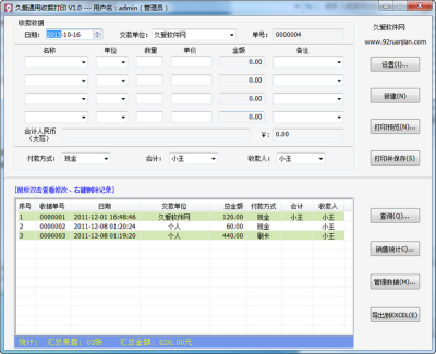 4、可对收据进行保存、修改、删除、查询等管理操作.