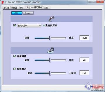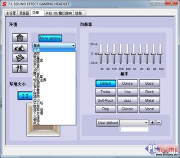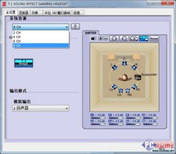 硕美科为G927设计的驱动程序界面比较友好,各种设置一目了然,符合G927这款耳机精工细作的风格。“主设置”下可以方便的设置耳机输出的声道数,从双声道到7.1声道完全可以有玩家自己控制。