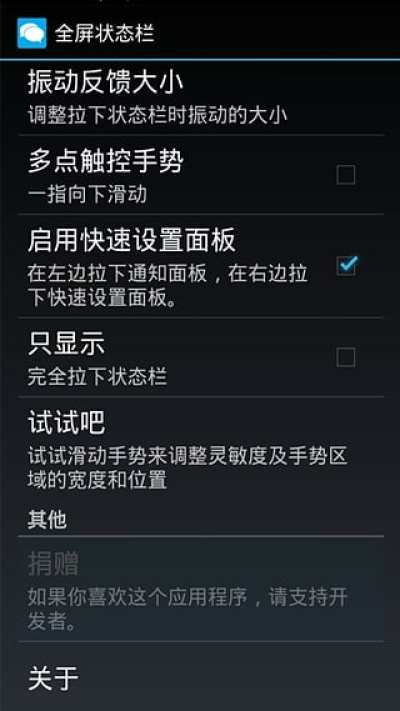 《便捷状态栏》是一款可以在全屏状态下通过滑动手势调出系统状态栏的应用。当您使用全屏应用时要了解诸如时间、电量或电子邮件信息,只需手指滑动屏幕顶部区域可激活显示状态栏,非常便捷高效。