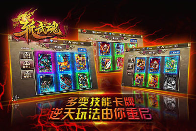 《斩武魂》-全新的第三代卡牌游戏:卡牌战斗指令游戏。与传统卡牌游戏不同的是,卡牌不再代表角色,而是代表战斗指令,无论是攻击、防御、回复,都由相应的卡牌提供指令支撑。战斗过程不再是呆板的自动战斗,而是完全由玩家来掌控,真正的策略战斗!