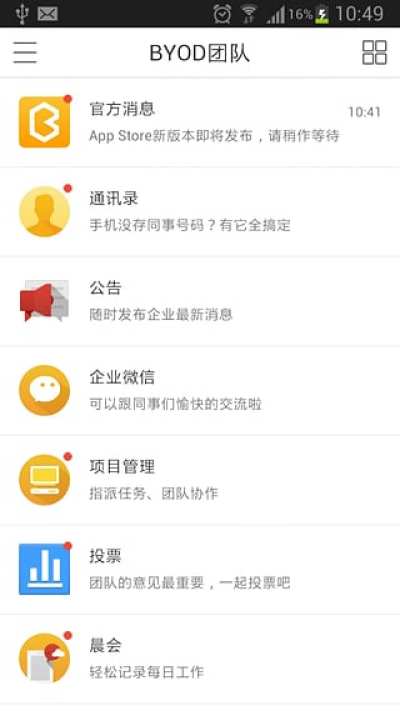 企业办公助手是一款面向小微企业的移动办公软件。主要提供通讯录、公告、项目管理、投票、企业微信五大功能。