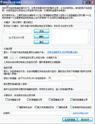 键盘记录大师是一款键盘操作记录工具,能够记录和监控电脑键盘操作活动,并将各类聊天软件的聊天记录、浏览的网站、游戏名称及密码等自动监控记录并上传到云端;请用于正规途径,请勿非法操作。
