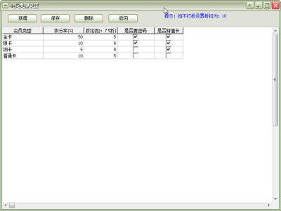 会员卡支持磁卡,条形卡,ID卡,IC卡,包括如下功能:会员类型设置,办理新卡,会员充值,会员卡挂失,挂失取消,挂失补办,卡密码修改,退卡管理,发卡查询,充值查询,会员余额查询,挂失查询,补卡查询,退卡查询,会员生日查询,会员消费查询。