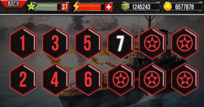 1、点击图标进入游戏,可以通过购买金币来提升战舰的各方面的性能;