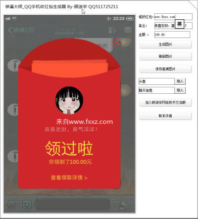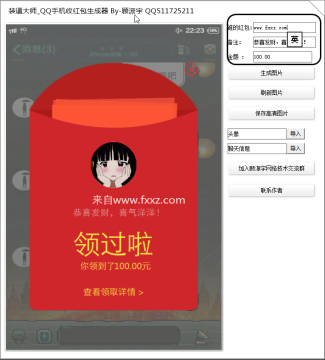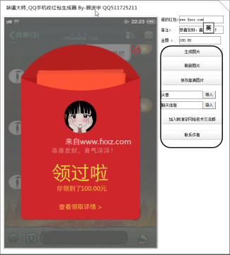QQ手机红包生成器是一款非常好玩搞笑的QQ红包生成制作工具。本软件针对QQ红包的截图制作,可以制作出你的QQ好友给你的QQ大红包截图,此软件适合装逼人士,欢迎下载!