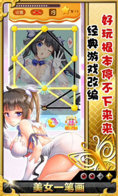 美女一笔画是一款非常有趣的益智连线手游,游戏加入了众多二次元美少女,玩家成功连线后美女会送出福利哦,赶快来加入吧。