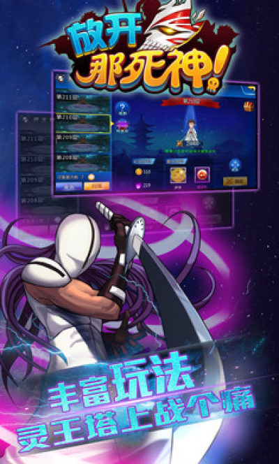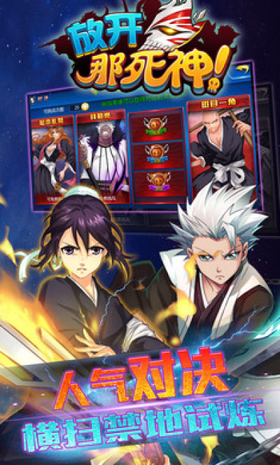 《放开那死神》是一款以人气漫画《死神》为题材的3D卡牌手机游戏,玩家将化身主角于指尖征战,炫酷的决战场景,动感的原声配音,3D的卍解特技,给你真切的战斗体验和最高级的视觉享受,最新版本中更有【好友】帮助,有【公会】陪伴,另有【羁绊 】给你最强辅助,全新的主城,绝版的新卡,不为强权而虐杀,但为荣誉而战斗,来吧,卡牌迷,死神迷,来这里实现你自己的梦吧!