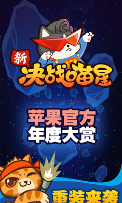 新决战喵星是一款以萌萌哒的喵星人为背景的酷炫战斗的消除类游戏!游戏中决战喵星重装上阵!本游戏被苹果商店官方评选为2014年最佳游戏之一!现新增推图模式,无限乐趣等你来玩。集创新玩法,可爱画面于一身的萌猫战斗游戏。