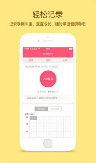记录孕期体重、宝宝成长、随时掌握健康动态