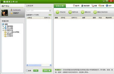 酷6极速上传是一款由酷6打造的视频上传桌面工具,集视频上传及视频播放加速功能于一体;为酷六用户提供更加快速、便捷、稳定、无限制的上传通道;同时还可以使用户在观看和点播视频时,更加流畅清晰,需要的朋友不要错过,赶紧下载体验一下吧。