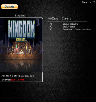 国王kingdom修改器由MrAntiFun制作,适用于游戏v1.0版本。玩家可以通过修改器将体力、金钱都调整为无限,另外还有快速建设的功能,每一项都可以帮助玩家顺利通关。如果你觉得游戏难度太大,那就来使用国王kingdom修改器。