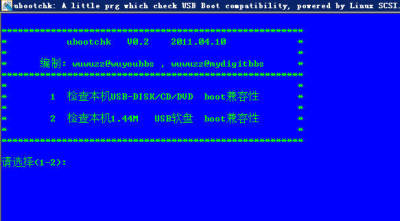 一般选择1,USB DISK/CD/DVD。ubootchk将自动查找本机USB存储设备(UMSD)。