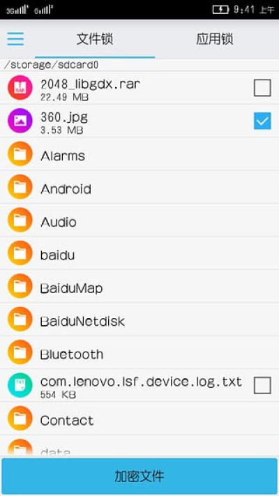 4.文件锁功能,可快速可对手机存储和SD卡存储上的文件进行加密。