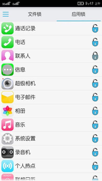 1.通过选择应用列表里的应用来为应用加锁和解锁。