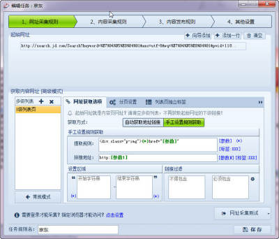 14.起始网址批量网址的地址格式可添加多个地址参数,支持自定义列表参数